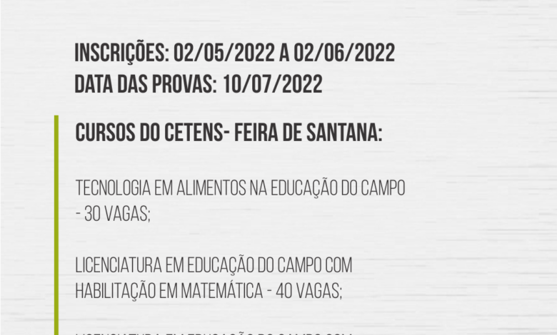 A Universidade Federal do Recôncavo da Bahia (UFRB), por meio da Pró-Reitoria de Graduação (PROGRAD), divulga a abertura do Processo Seletivo Especial destinado a selecionar candidatos para ingresso nos cursos de graduação na Educação do Campo da UFRB, em Regime de Alternância, no semestre 2022.1, nos Campi de Amargosa e Feira de Santana.