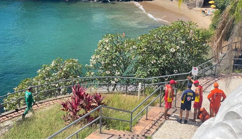 O corpo de um homem foi encontrado e resgatado preso à uma pedra na Praia da Gamboa, em Salvador, nesta quarta-feira, 11. O cadáver, que está em avançado estado de decomposição, foi içado por militares do Corpo de Bombeiros. Até o momento, não se sabe a causa da morte da vítima. A principal suspeita é assassinato.