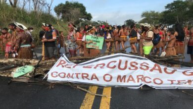 Grupo indígena protesta pelo segundo dia seguido e interdita trecho de rodovia